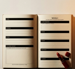 The Fabulously Aligned Planner is not a pretty book you leave on your desk. It is a full-year reckoning — built on the Rouge Receipts Method™ and designed for the woman who is done performing progress and ready to document it.